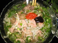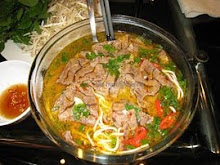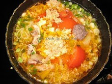 xương heo hoạc giò heo hầm lấy nước xong vớt xương hay giò ra, khi nước sôi hơi có tim thì đổ hổn hợp gạch cua với trứng ở trên vào, cho sôi nhẹ thì lấy cái đũa dài khuậy nhẹ tay ở dưới để cho riêu không bị dinh phía dưới và sẽ từ từ nổi lên trên. Nhớ đừng để lửa mạnh riêu sẽ bị bể thì không được đẹp. Bác chảo dầu nóng lên, xào hành thơm lên bỏ cà chua vào, xào thật nhanh tay, đổ vào nồi riêu, nêm nếm là xong. nếu thích màu đẹp thì cho chút màu dầu đều .Bún riêu ăn kèm với bắp chuối bào, rau muống chẻ, tía tô, kinh giới, mint, mắm tôm, chanh và ớt.